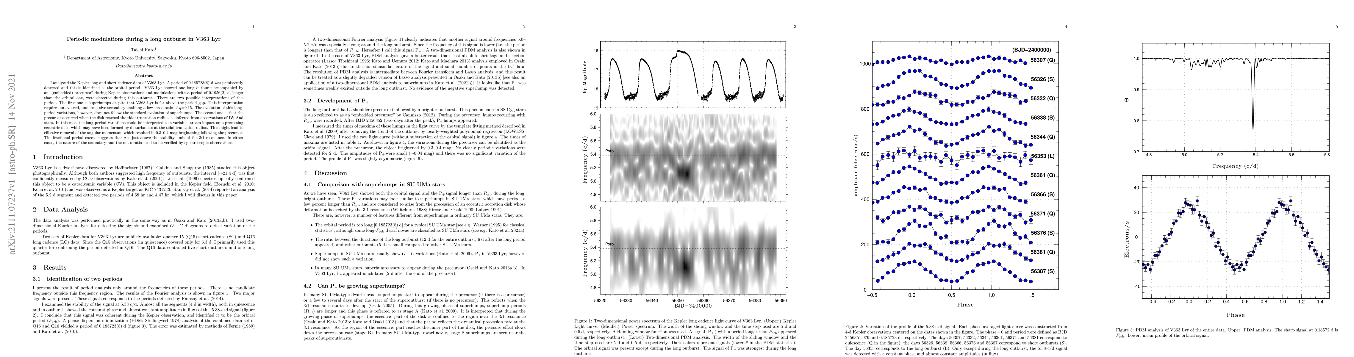 I analyzed the Kepler long and short cadence data of V363 Lyr. A period of 0.185723(8) d was persistently detected and this is identified as the orbital period. V363 Lyr showed one long outburst accompanied by an "(embedded) precursor" during Kepler observations and modulations with a period of 0.1956(2) d, longer than the orbital one, were detected during this outburst. There are two possible interpretations of this period. The first one is superhumps despite that V363 Lyr is far above the period gap. This interpretation requires an evolved, undermassive secondary enabling a low mass ratio of q=0.15. The evolution of this long-period variations, however, does not follow the standard evolution of superhumps. The second one is that the precursor occurred when the disk reached the tidal truncation radius, as inferred from observations of IW And stars. In this case, the long-period variations could be interpreted as a variable stream impact on a precessing eccentric disk, which may have been formed by disturbances at the tidal truncation radius. This might lead to effective removal of the angular momentum which resulted in 0.3-0.4 mag brightening following the precursor. The fractional period excess suggests that q is just above the stability limit of the 3:1 resonance. In either cases, the nature of the secondary and the mass ratio need to be verified by spectroscopic observations.