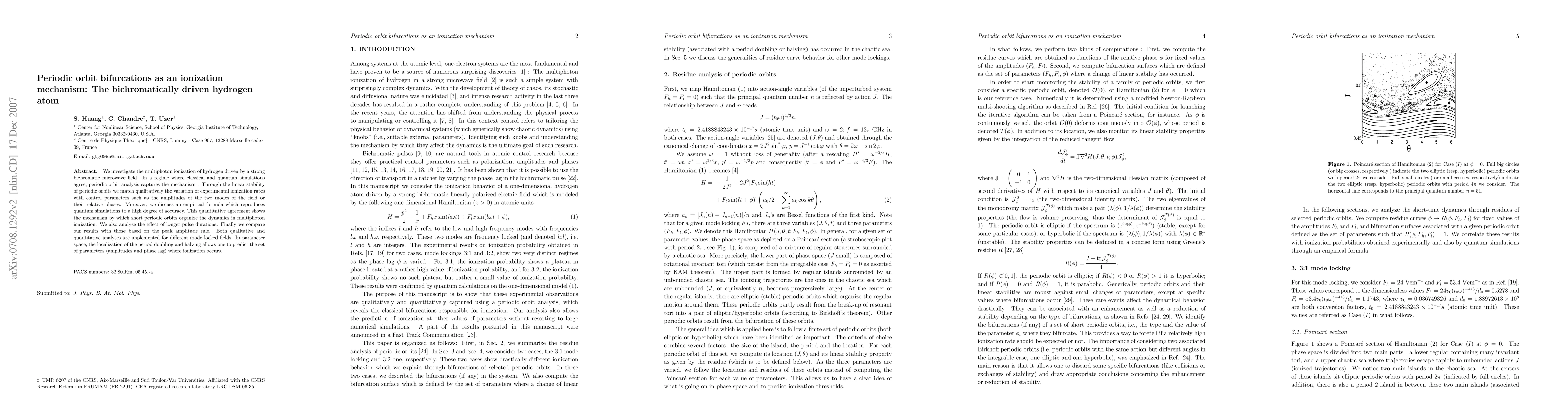 This paper explores the multiphoton ionization of hydrogen under a strong bichromatic microwave field, demonstrating that periodic orbit bifurcations effectively describe the ionization mechanism. The study shows quantitative agreement between classical periodic orbit analysis and quantum simulations, providing an empirical formula that accurately predicts ionization rates based on the field's parameters.