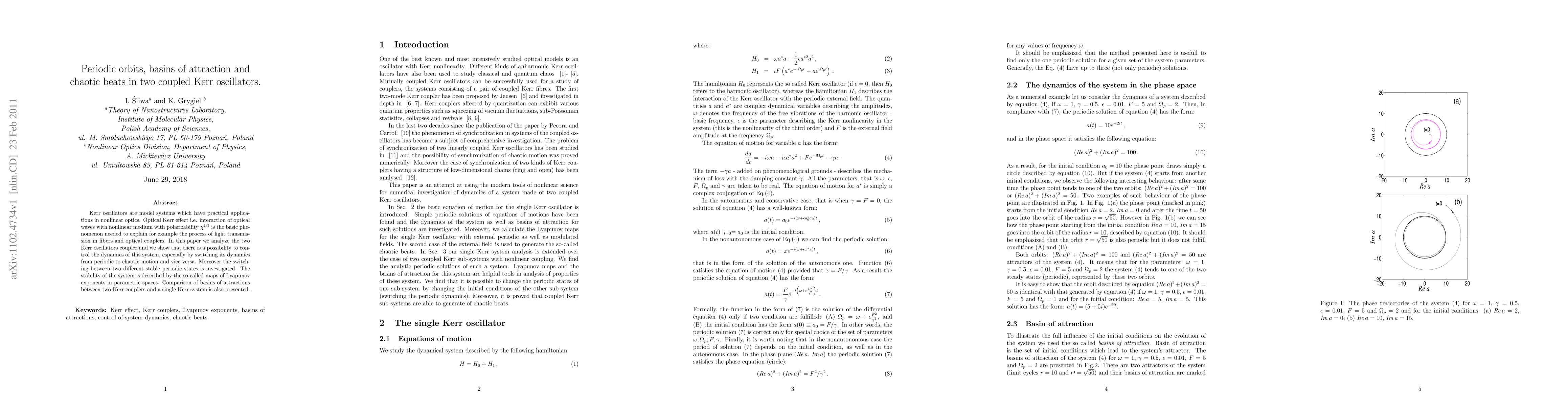 Kerr oscillators are model systems which have practical applications in nonlinear optics. Optical Kerr effect i.e. interaction of optical waves with nonlinear medium with polarizability $\chi^{(3)}$ is the basic phenomenon needed to explain for example the process of light transmission in fibers and optical couplers. In this paper we analyze the two Kerr oscillators coupler and we show that there is a possibility to control the dynamics of this system, especially by switching its dynamics from periodic to chaotic motion and vice versa. Moreover the switching between two different stable periodic states is investigated. The stability of the system is described by the so-called maps of Lyapunov exponents in parametric spaces. Comparison of basins of attractions between two Kerr couplers and a single Kerr system is also presented.