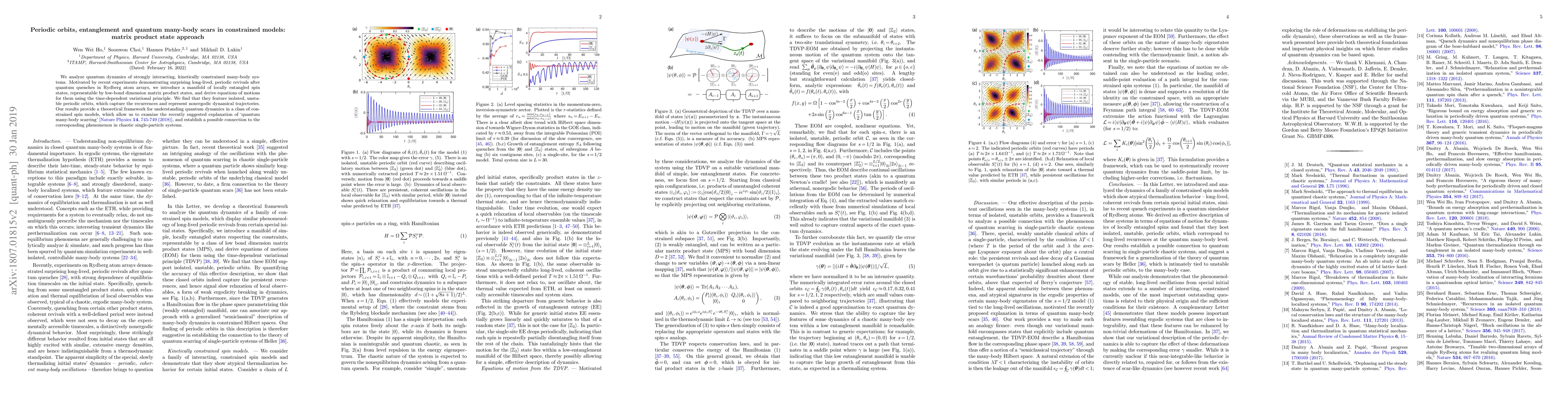This paper explores the quantum dynamics of strongly interacting, kinetically constrained many-body systems using matrix product states. It identifies isolated, unstable periodic orbits that explain long-lived, periodic revivals observed in experiments, providing a theoretical framework for understanding 'quantum many-body scarring'.