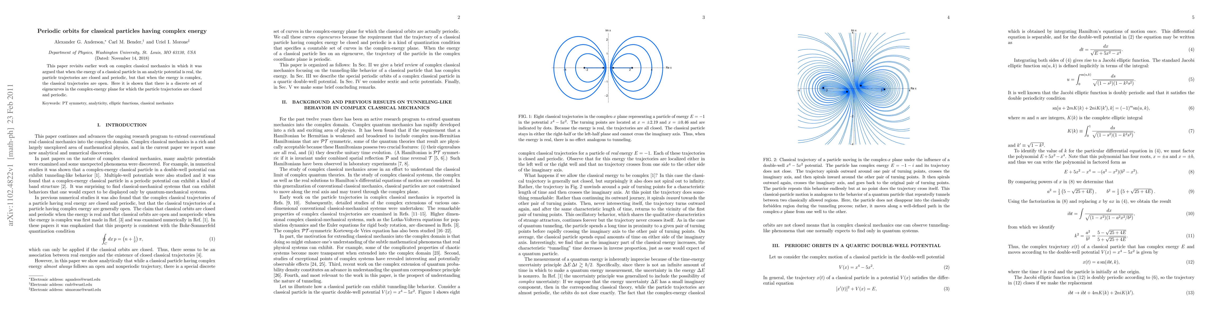 This paper explores complex classical mechanics, demonstrating that while real energy results in closed, periodic particle trajectories, complex energy generally leads to open trajectories. However, it identifies a discrete set of eigencurves in the complex-energy plane where particle trajectories remain closed and periodic.