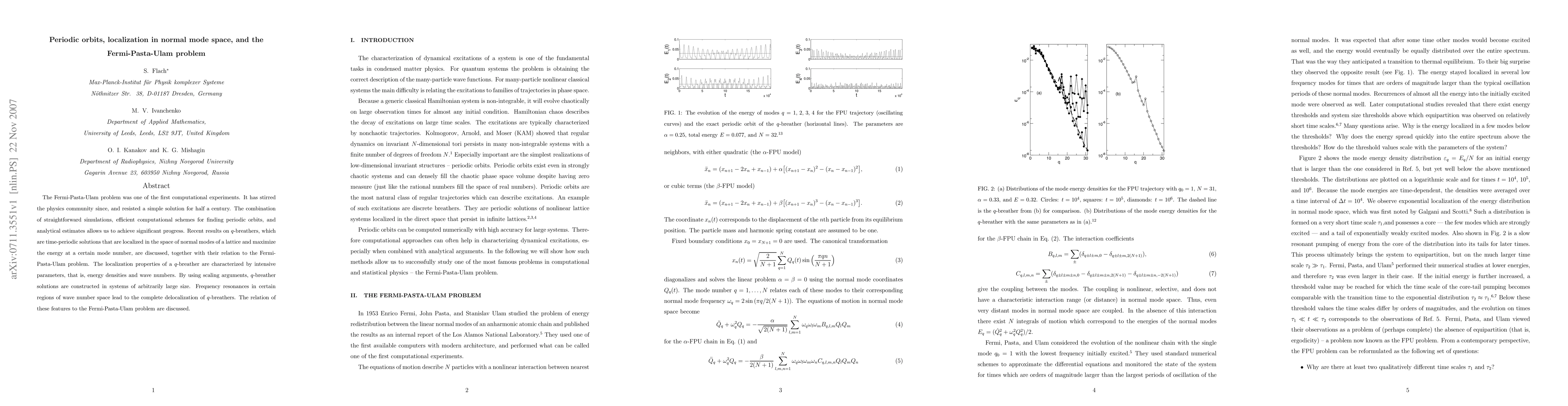 The Fermi-Pasta-Ulam problem was one of the first computational experiments. It has stirred the physics community since, and resisted a simple solution for half a century. The combination of straightforward simulations, efficient computational schemes for finding periodic orbits, and analytical estimates allows us to achieve significant progress. Recent results on $q$-breathers, which are time-periodic solutions that are localized in the space of normal modes of a lattice and maximize the energy at a certain mode number, are discussed, together with their relation to the Fermi-Pasta-Ulam problem. The localization properties of a $q$-breather are characterized by intensive parameters, that is, energy densities and wave numbers. By using scaling arguments, $q$-breather solutions are constructed in systems of arbitrarily large size. Frequency resonances in certain regions of wave number space lead to the complete delocalization of $q$-breathers. The relation of these features to the Fermi-Pasta-Ulam problem are discussed.