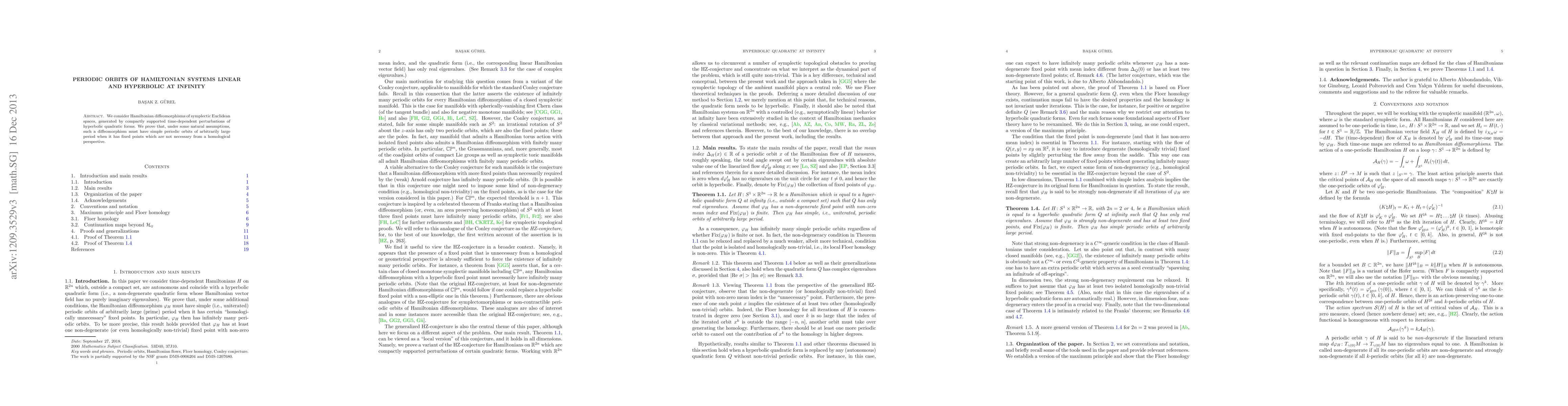 Summary: This paper proves that Hamiltonian diffeomorphisms of Euclidean space, generated by compactly supported perturbations of hyperbolic quadratic forms, possess simple periodic orbits of arbitrarily large periods, provided the system has fixed points that are not necessarily homological. The findings extend the understanding of periodic orbits in Hamiltonian systems.