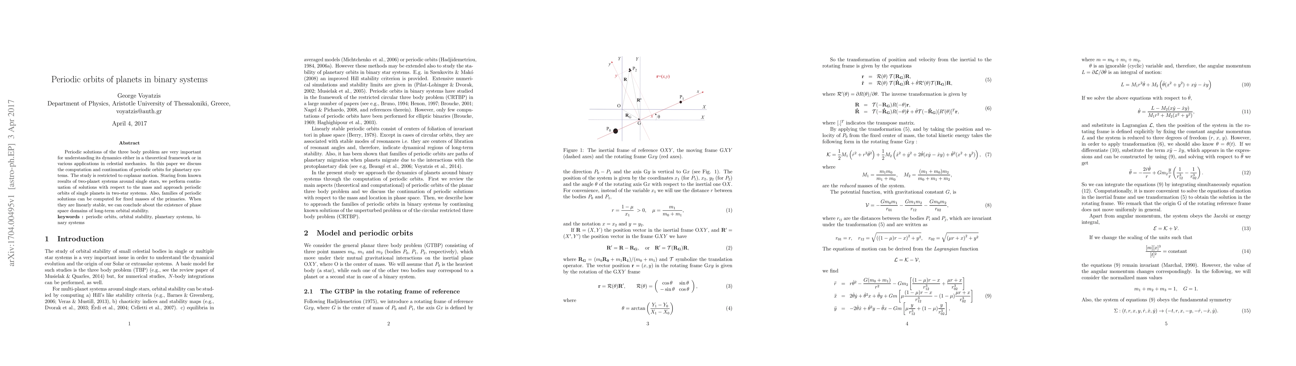 Researchers computed periodic orbits for planets in binary systems, focusing on coplanar motion and stability, with implications for understanding celestial mechanics.