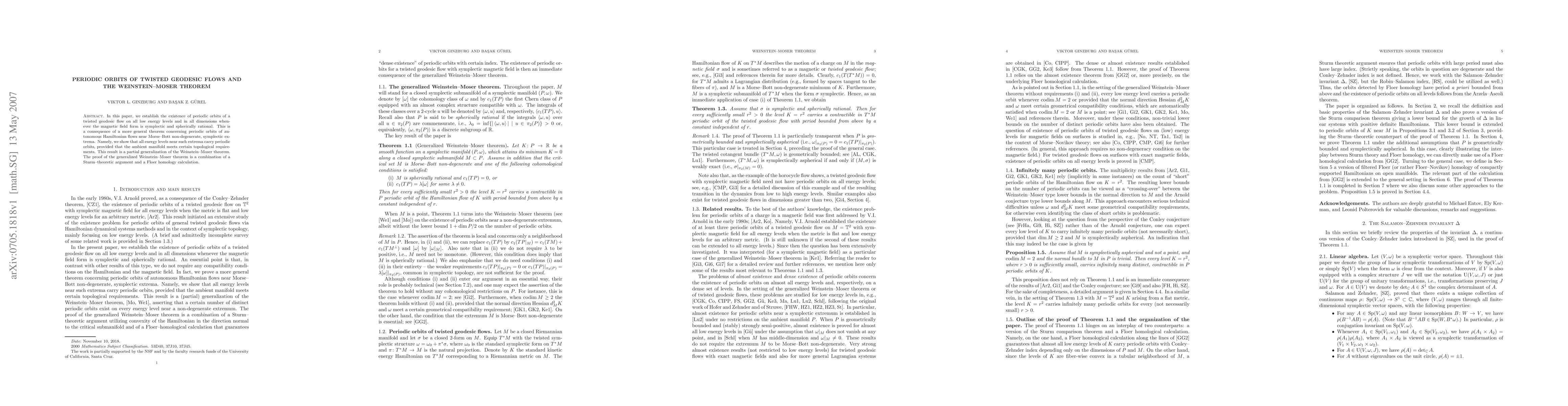 The paper establishes the existence of periodic orbits for twisted geodesic flows on low energy levels and all dimensions, provided the magnetic field is symplectic and spherically rational. This extends the Weinstein-Moser theorem and uses a combination of Sturm theory and Floer homology for the proof.