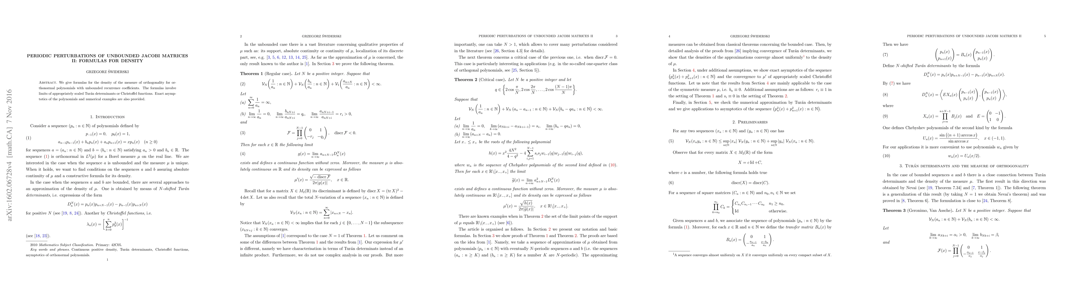 This paper provides formulas for calculating the density of measure of orthogonality for unbounded Jacobi matrices using Turan determinants or Christoffel functions.