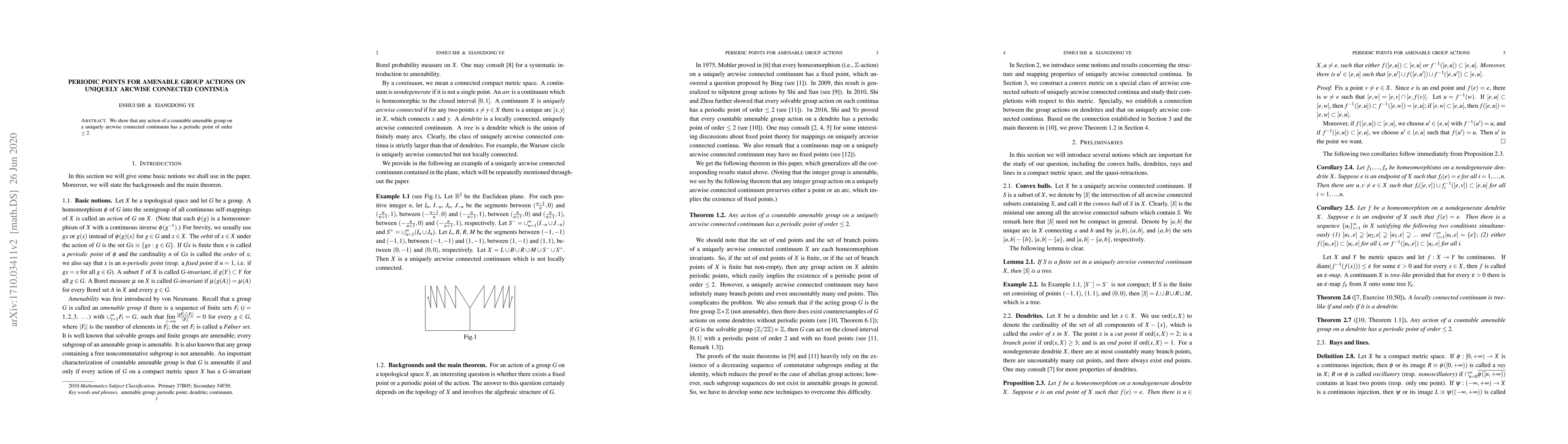 Summary: This paper proves that a countable amenable group acting on a uniquely arcwise connected continuum either has a fixed point or a 2-periodic point. The result highlights the presence of periodic points in such group actions.