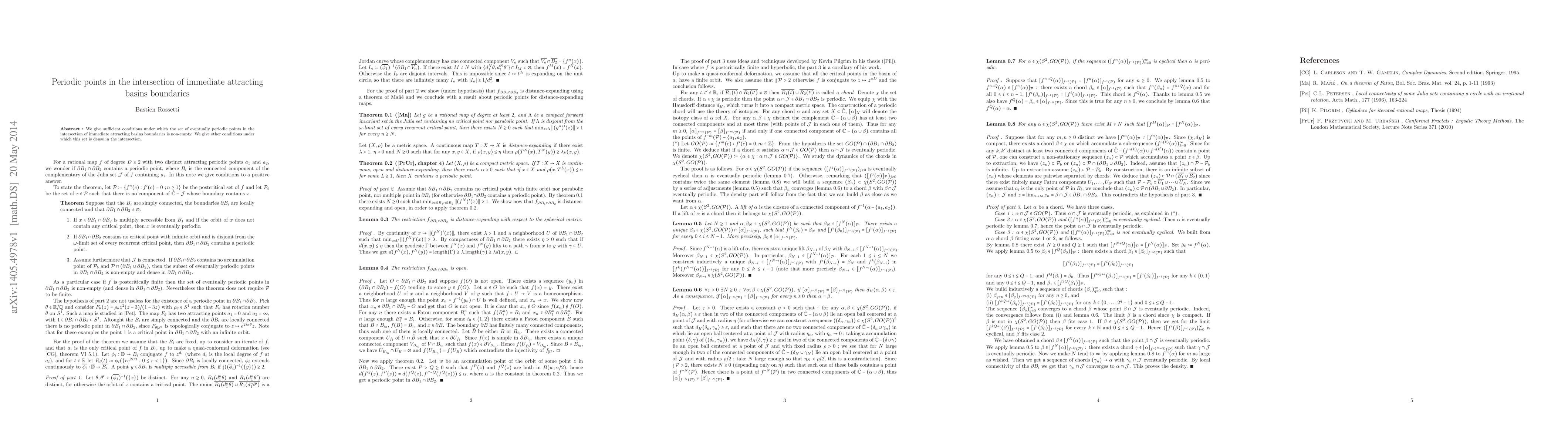 We give sufficient conditions under which the set of eventually periodic points in the intersection of immediate attracting basins boundaries is non-empty. We give other conditions under which this set is dense in the intersection.