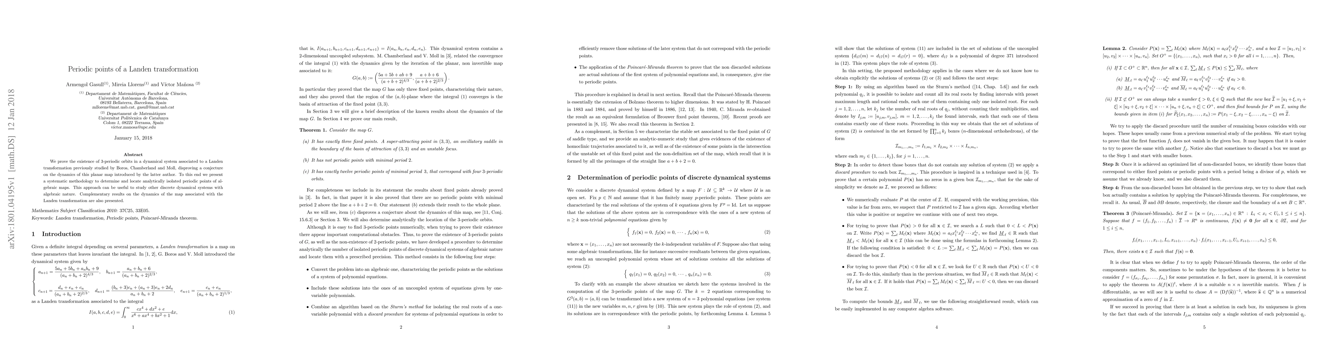 Researchers prove the existence of 3-periodic orbits in a Landen transformation, disproving a conjecture, using a systematic methodology to determine and locate analytically isolated periodic points.