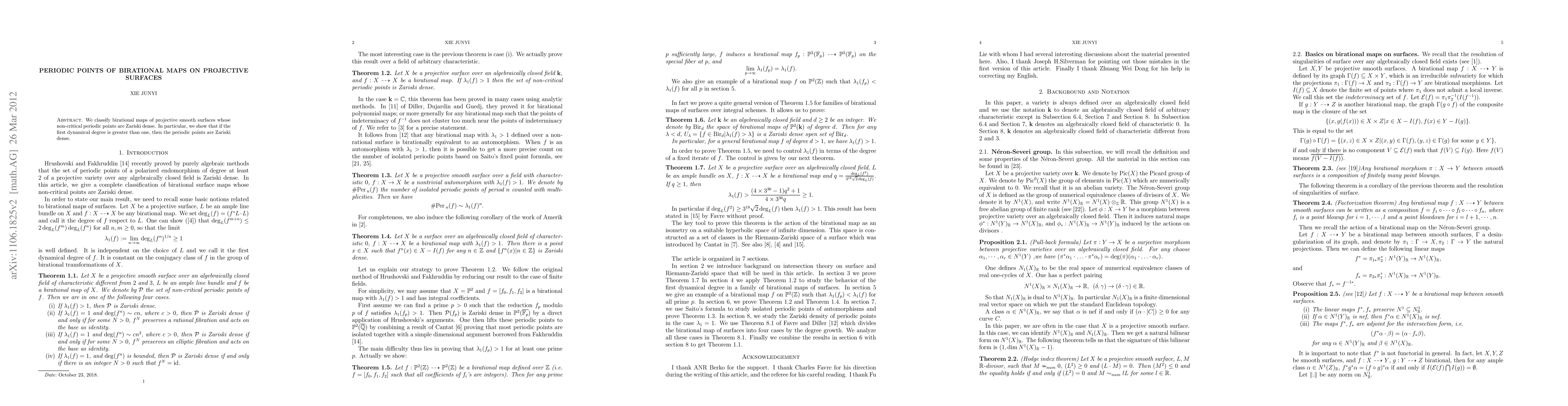This research classifies birational maps on smooth projective surfaces where non-critical periodic points are Zariski dense, demonstrating that if the first dynamical degree exceeds one, such density holds true.