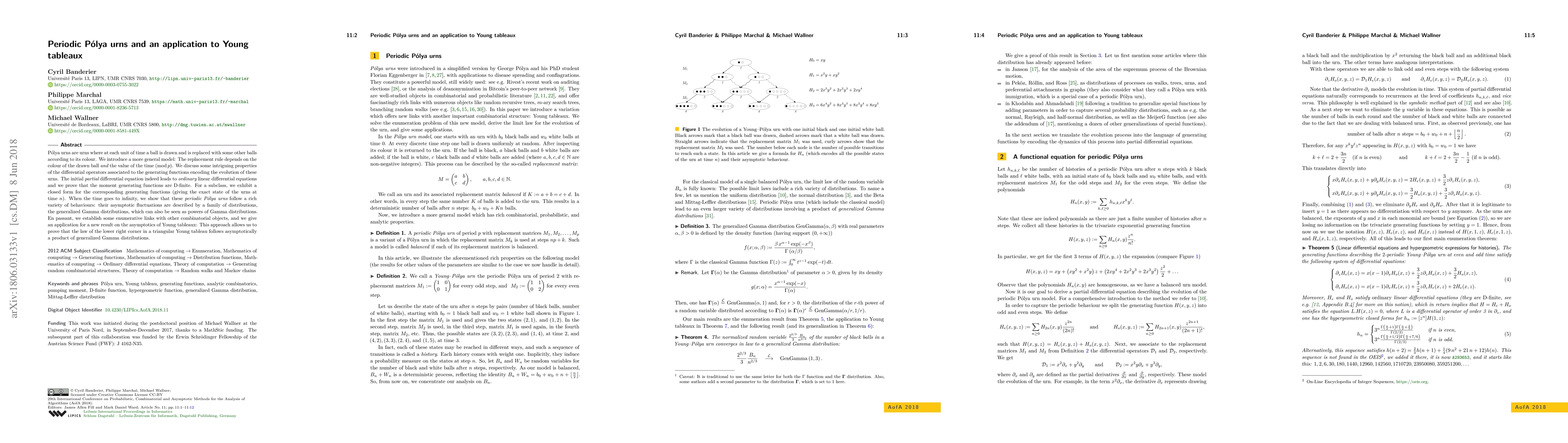 P{\'o}lya urns are urns where at each unit of time a ball is drawn and is replaced with some other balls according to its colour. We introduce a more general model: The replacement rule depends on the colour of the drawn ball and the value of the time (mod p). We discuss some intriguing properties of the differential operators associated to the generating functions encoding the evolution of these urns. The initial partial differential equation indeed leads to ordinary linear differential equations and we prove that the moment generating functions are D-finite. For a subclass, we exhibit a closed form for the corresponding generating functions (giving the exact state of the urns at time n). When the time goes to infinity, we show that these periodic P{\'o}lya urns follow a rich variety of behaviours: their asymptotic fluctuations are described by a family of distributions, the generalized Gamma distributions, which can also be seen as powers of Gamma distributions. En passant, we establish some enumerative links with other combinatorial objects, and we give an application for a new result on the asymptotics of Young tableaux: This approach allows us to prove that the law of the lower right corner in a triangular Young tableau follows asymptotically a product of generalized Gamma distributions.