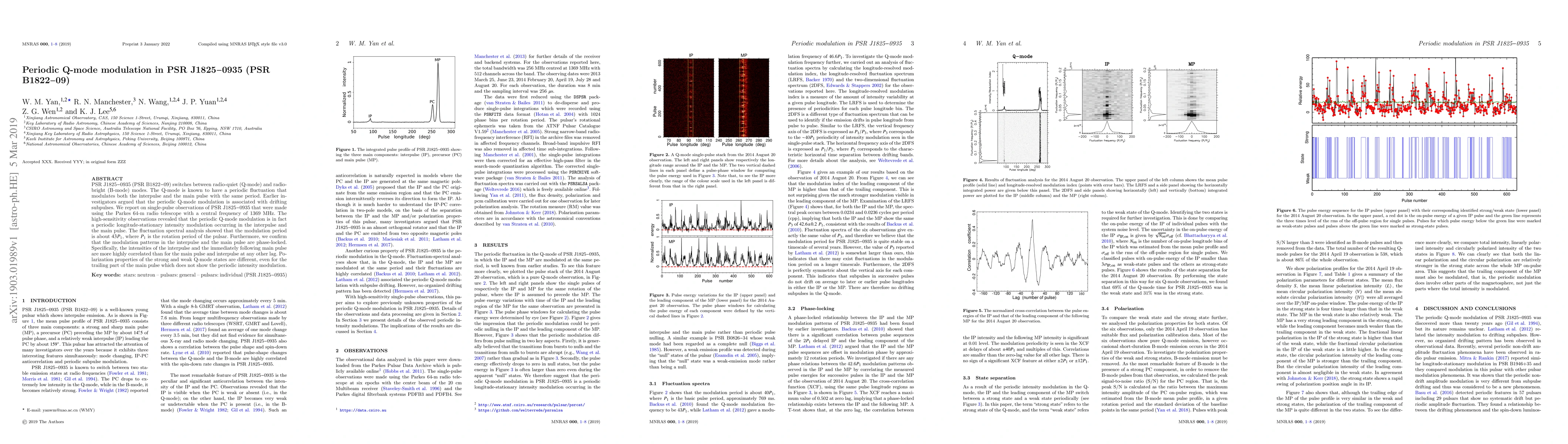 This paper reports on single-pulse observations of PSR J1825$-$0935, revealing that the periodic Q-mode modulation is a longitude-stationary intensity modulation in both the interpulse and main pulse, with a modulation period of about $43 P_1$. The study confirms phase-locked modulation patterns and distinct polarization properties between strong and weak Q-mode states.
