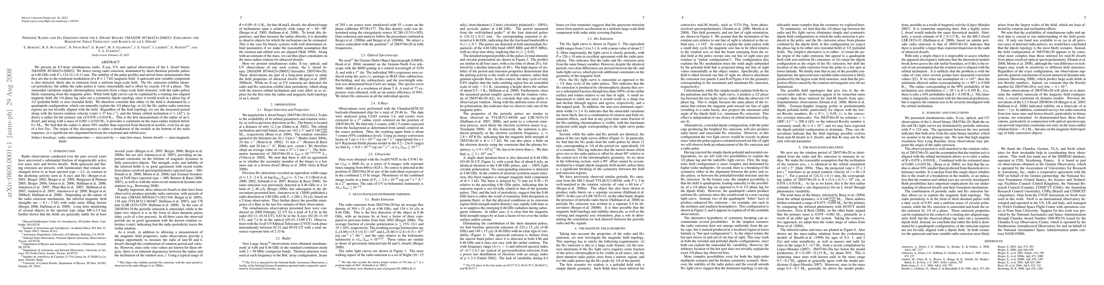 Astronomers observed a binary L dwarf star system, detecting strong periodic radio emissions and H-alpha emission that vary in phase, suggesting a complex magnetic field topology and providing the first measurement of an L dwarf's radius.