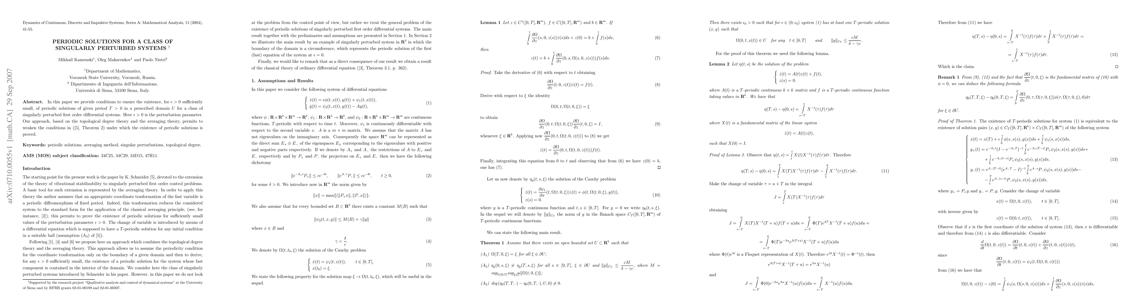 In this paper we provide conditions to ensure the existence, for $e>0$ sufficiently small, of periodic solutions of given period $T>0$ in a prescribed domain $U$ for a class of singularly perturbed first order differential systems. Here $e>0$ is the perturbation parameter. Our approach, based on the topological degree theory and the averaging theory, permits to weaken the conditions in [K.R. Schneider, Vibrational control of singularly perturbed systems, in "Lectures Notes in Control and Information Science", 259, 397-408, Springer, London, 2001, Theorem 2] under which the existence of periodic solutions is proved.
