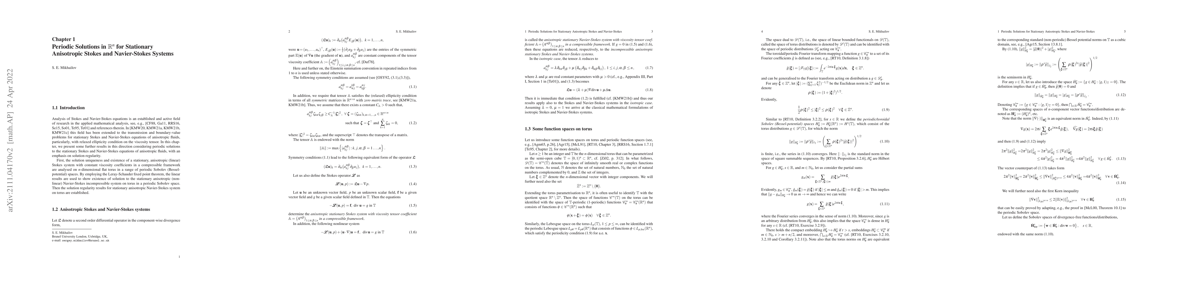 A detailed description of the research methodology used to investigate the periodic solutions for stationary anisotropic Stokes and Navier-Stokes systems.
