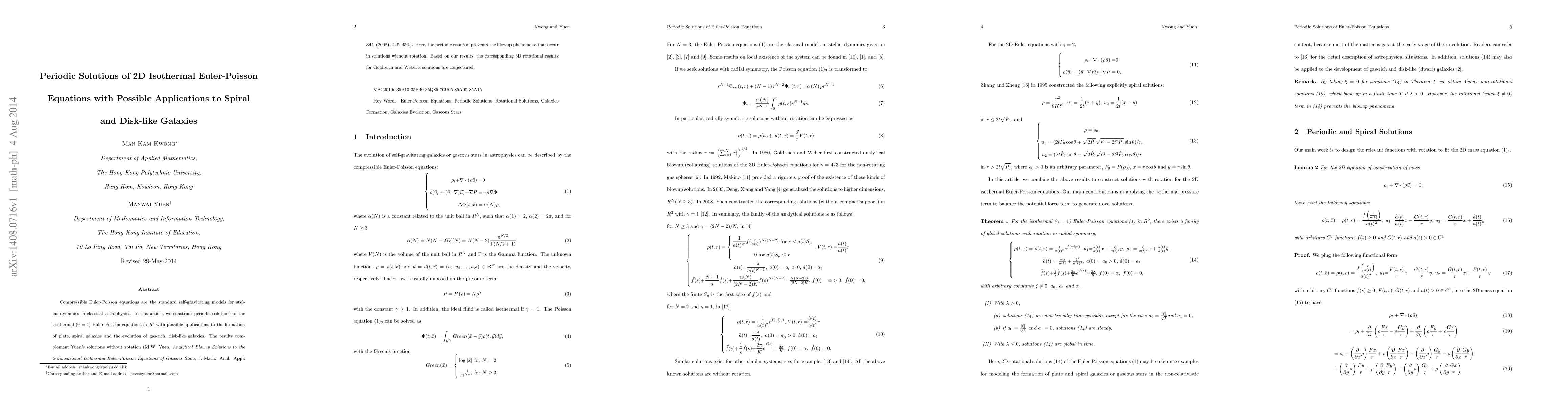 This paper constructs periodic solutions to the 2D isothermal Euler-Poisson equations, addressing the formation and evolution of spiral and disk-like galaxies by preventing blowup phenomena typically seen in non-rotating solutions. The study extends Yuen's earlier work and conjectures 3D rotational results based on the findings.