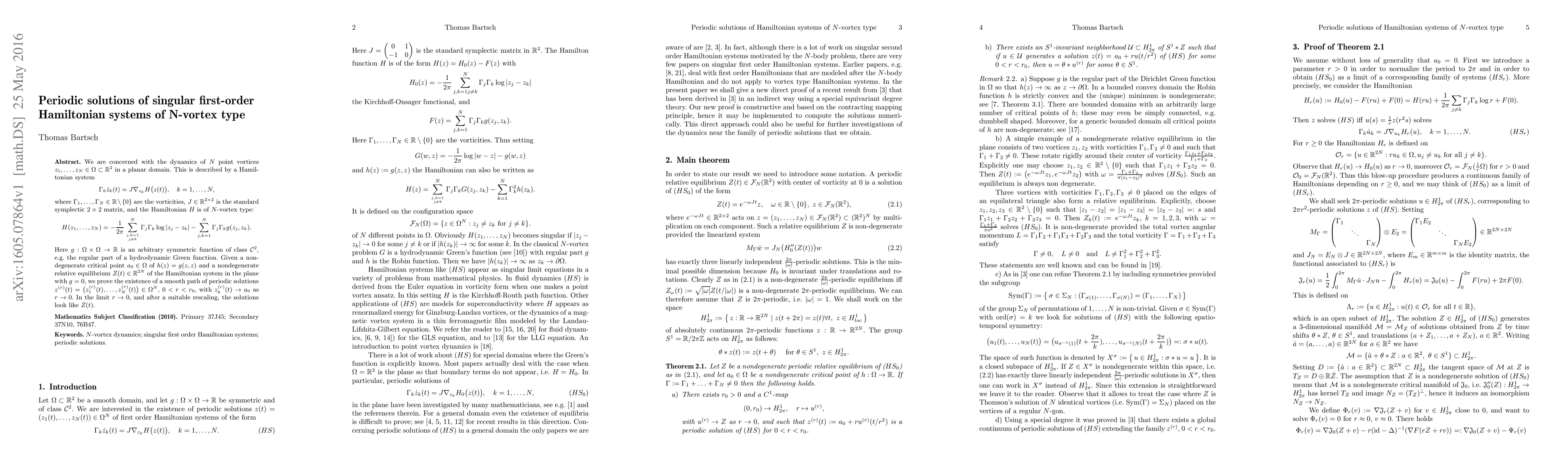 the Hamiltonian $H$ is of $N$-vortex type: \[ H(z_1,\dots,z_N)