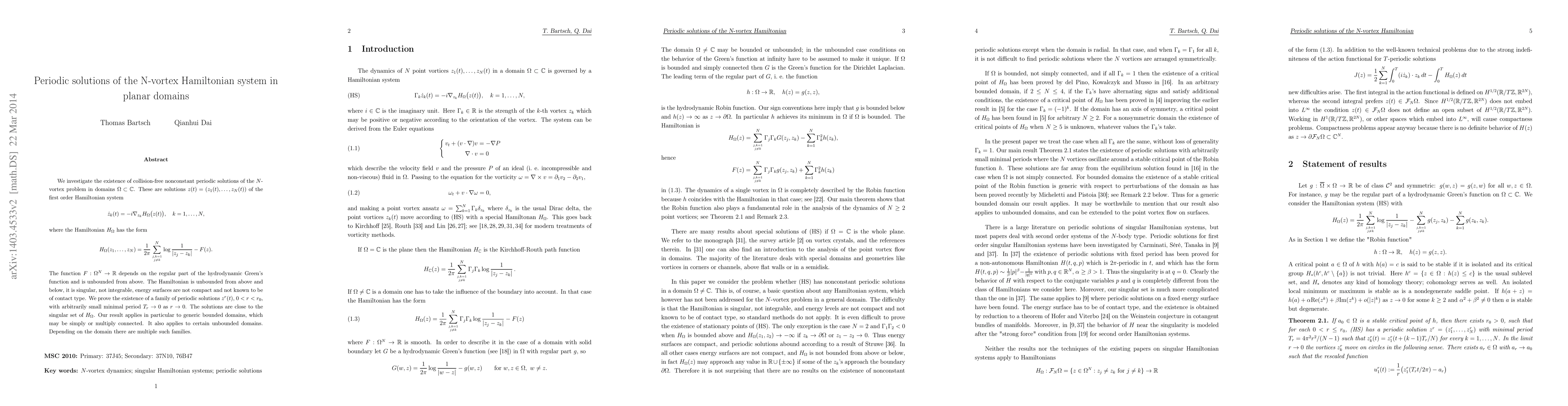 solutions $z(t)=(z_1(t),\dots,z_N(t))$ of the first order Hamiltonian system \[