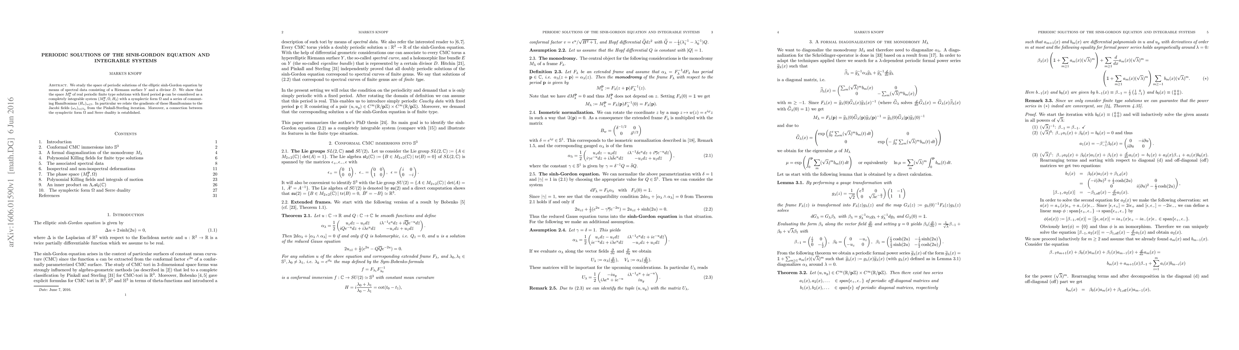 This paper investigates the periodic solutions of the elliptic $\sinh$-Gordon equation, demonstrating that the space of such solutions forms a completely integrable system with a symplectic form and a series of commuting Hamiltonians. It also establishes a connection between these Hamiltonians and Jacobi fields from the Pinkall-Sterling iteration, along with a link between the symplectic form and Serre duality.
