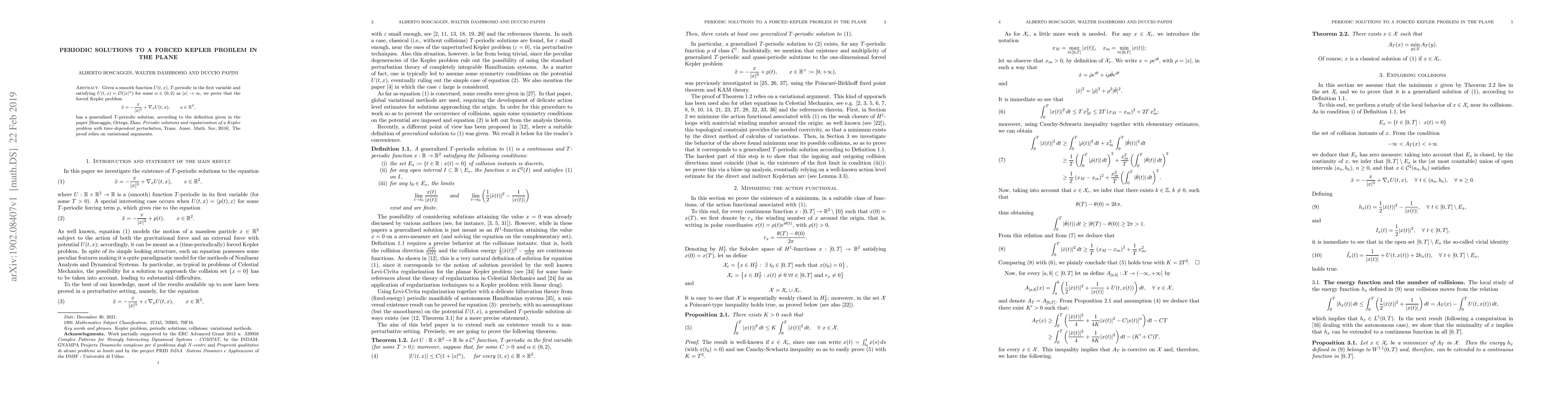 A forced Kepler problem with a time-dependent perturbation has a generalized T-periodic solution, proven using variational arguments.