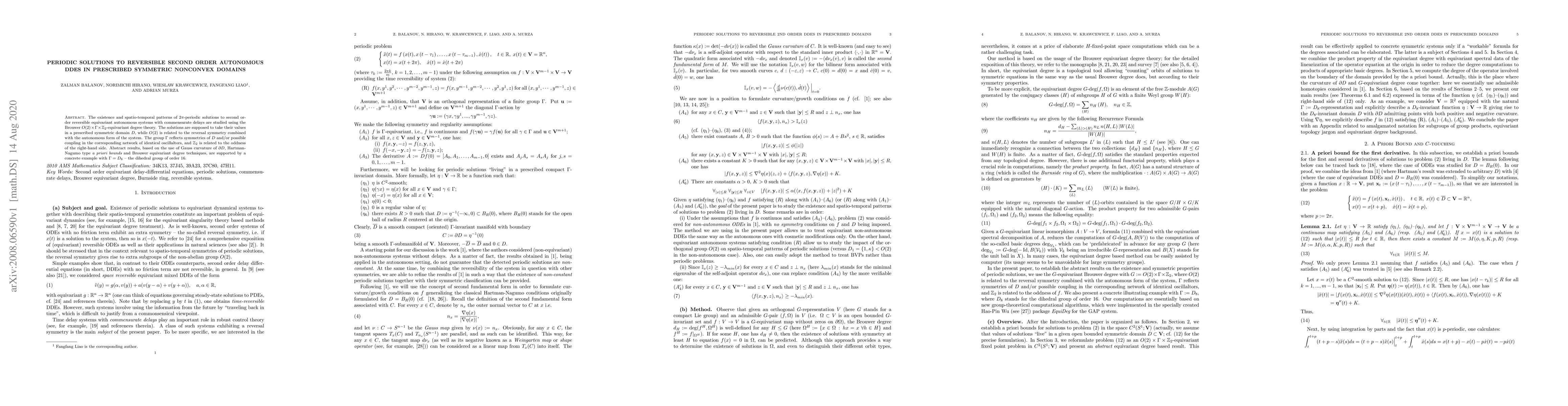 The existence and spatio-temporal patterns of $2\pi$-periodic solutions to second order reversible equivariant autonomous systems with commensurate delays are studied using the Brouwer $O(2) \times \Gamma \times \mathbb Z_2$-equivariant degree theory. The solutions are supposed to take their values in a prescribed symmetric domain $D$, while $O(2)$ is related to the reversal symmetry combined with the autonomous form of the system. The group $\Gamma$ reflects symmetries of $D$ and/or possible coupling in the corresponding network of identical oscillators, and $\mathbb Z_2$ is related to the oddness of the right-hand side. Abstract results, based on the use of Gauss curvature of $\partial D$, Hartman-Nagumo type {\it a priori bounds} and Brouwer equivariant degree techniques, are supported by a concrete example with $\Gamma = D_8$ -- the dihedral group of order $16$.