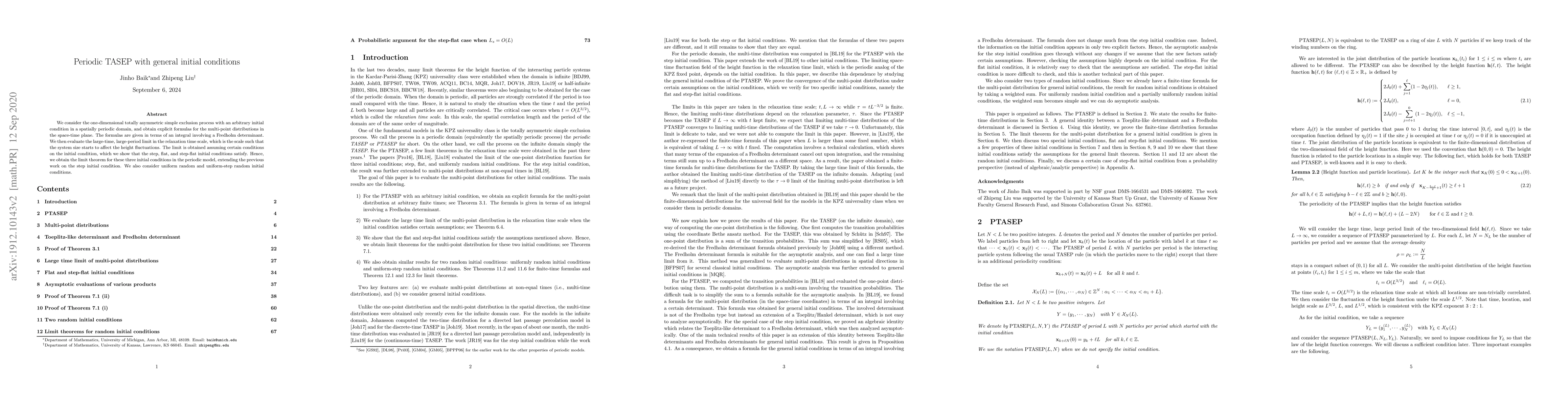 Researchers derived explicit formulas for multi-point distributions in a one-dimensional TASEP model with general initial conditions and periodic domain, extending previous work on the step initial condition.