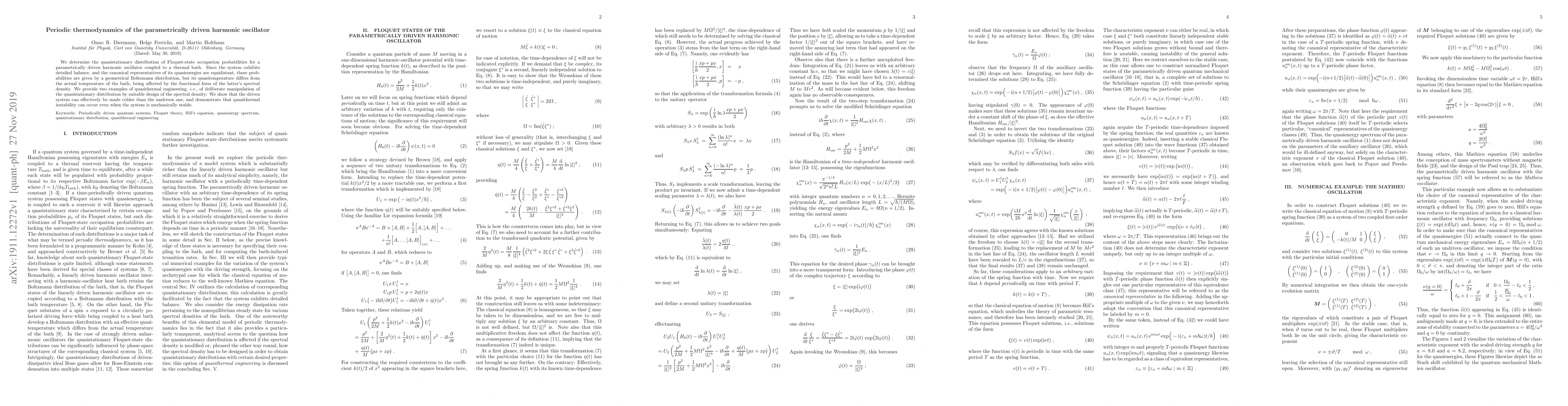 This paper investigates the quasistationary distribution of a parametrically driven harmonic oscillator coupled to a thermal bath, revealing a geometrical Boltzmann distribution with a quasitemperature distinct from the bath's temperature, influenced by the spectral density. It demonstrates quasithermal engineering, showing how the system can be made colder than undriven counterparts and illustrating quasithermal instability despite mechanical stability.