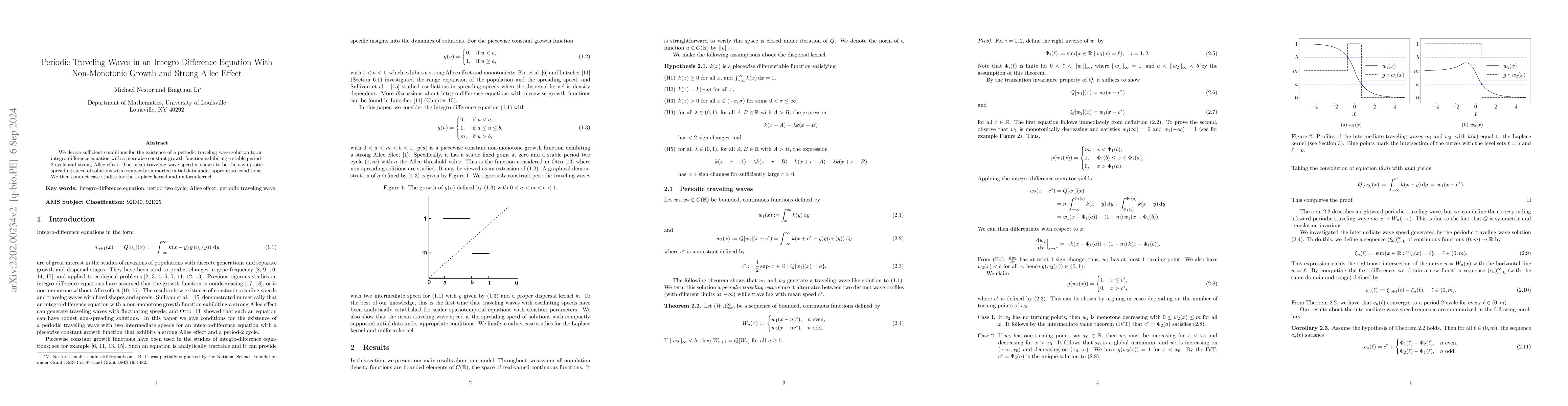 Summary: This paper establishes conditions for periodic traveling wave solutions in an integro-difference equation featuring non-monotonic growth and a strong Allee effect, demonstrating the asymptotic spreading speed. Case studies for Laplace and uniform kernels are also presented.