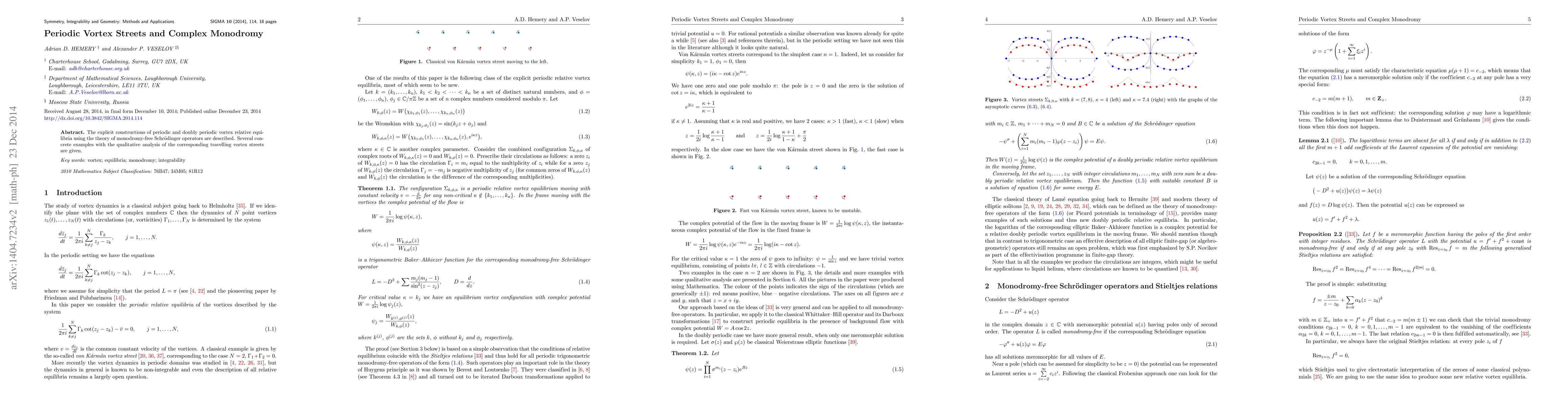 Researchers construct periodic vortex equilibria using Schr"odinger operators and analyze traveling vortex streets with qualitative analysis.
