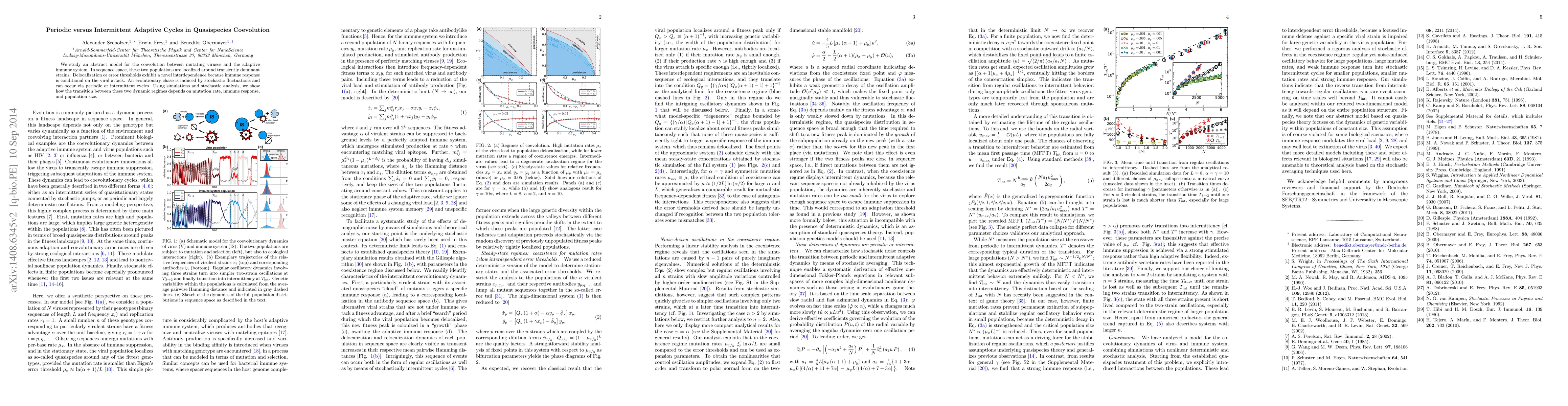 This paper investigates the co-evolution dynamics between mutating viruses and the adaptive immune system, demonstrating how stochastic fluctuations can induce either periodic or intermittent adaptive cycles. The study reveals the interdependence of delocalization and error thresholds, influenced by mutation rate, immune response, and population size.
