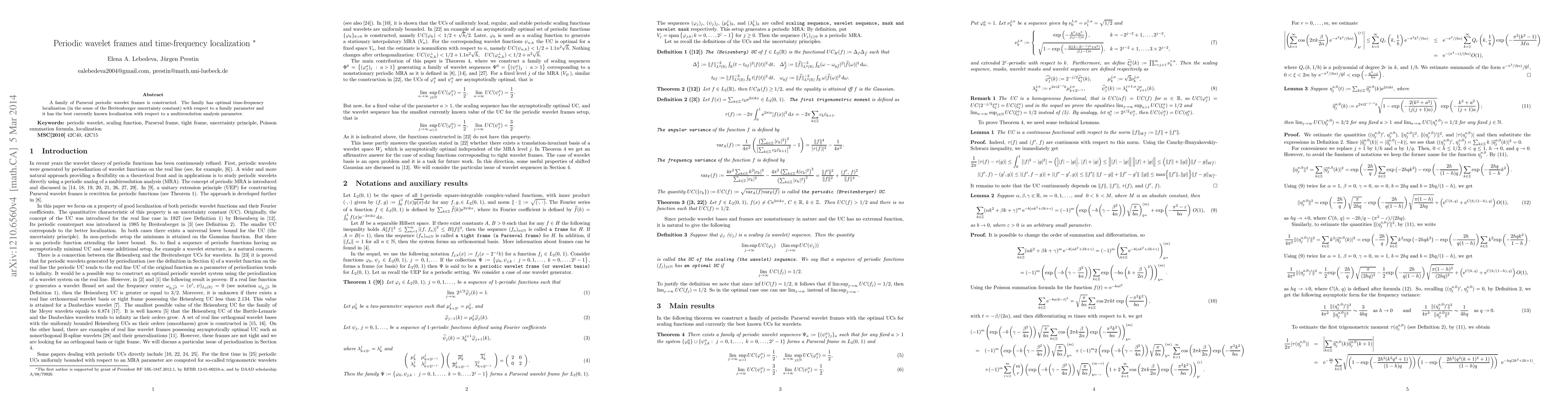 Summary: This research constructs a family of Parseval periodic wavelet frames with optimal time-frequency localization, achieving the best known localization relative to a multiresolution analysis parameter. The study focuses on the Breitenberger uncertainty constant for superior localization properties.