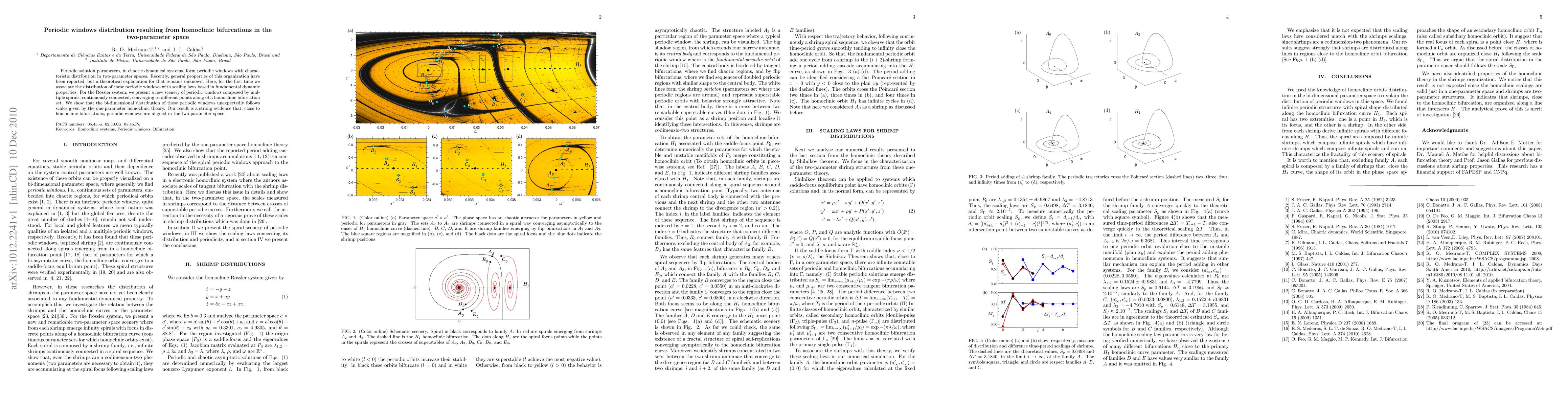 Periodic solution parameters, in chaotic dynamical systems, form periodic windows with characteristic distribution in two-parameter spaces. Recently, general properties of this organization have been reported, but a theoretical explanation for that remains unknown. Here, for the first time we associate the distribution of these periodic windows with scaling laws based in fundamental dynamic properties. For the R\"ossler system, we present a new scenery of periodic windows composed by multiple spirals, continuously connected, converging to different points along of a homoclinic bifurcation set. We show that the bi-dimensional distribution of these periodic windows unexpectedly follows scales given by the one-parameter homoclinic theory. Our result is a strong evidence that, close to homoclinic bifurcations, periodic windows are aligned in the two-parameter space.