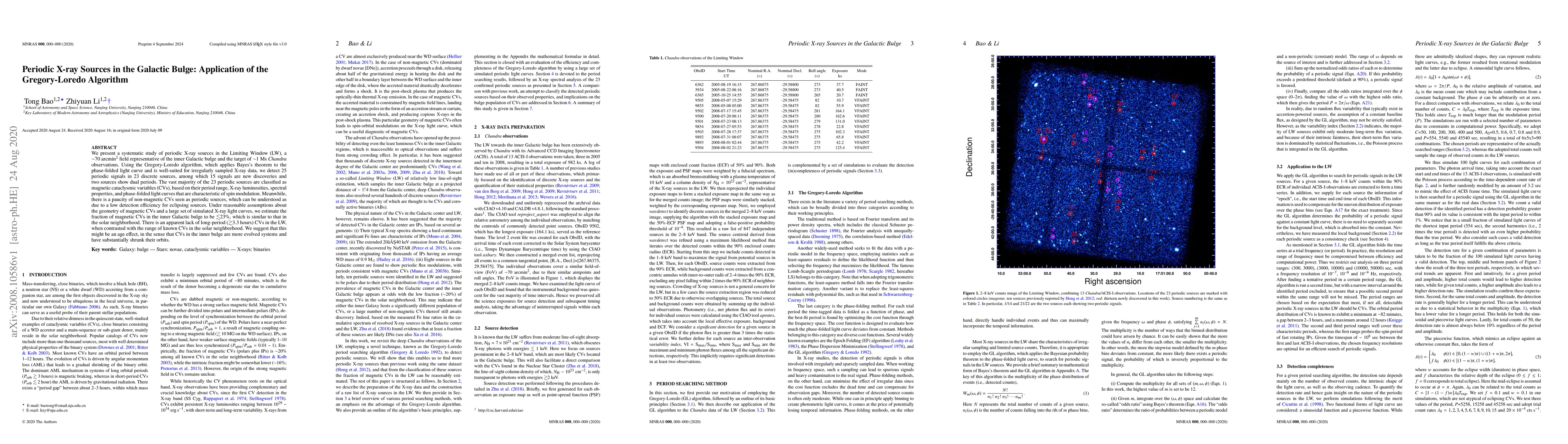 The study detects 25 periodic X-ray sources in the Galactic bulge using the Gregory-Loredo algorithm, classifying most as magnetic cataclysmic variables, with a surprisingly low detection rate of long-period CVs.