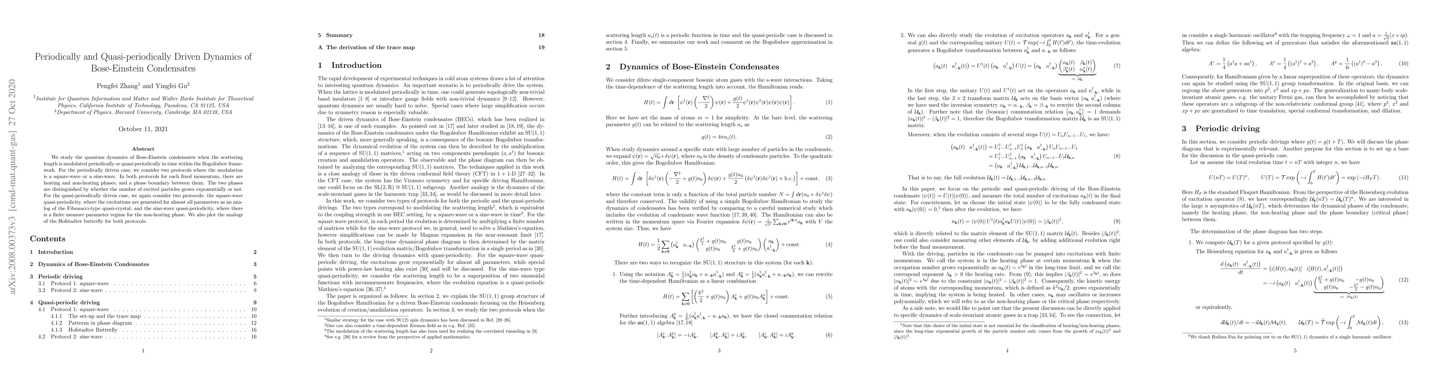 We study the quantum dynamics of Bose-Einstein condensates when the scattering length is modulated periodically or quasi-periodically in time within the Bogoliubov framework. For the periodically driven case, we consider two protocols where the modulation is a square-wave or a sine-wave. In both protocols for each fixed momentum, there are heating and non-heating phases, and a phase boundary between them. The two phases are distinguished by whether the number of excited particles grows exponentially or not. For the quasi-periodically driven case, we again consider two protocols: the square-wave quasi-periodicity, where the excitations are generated for almost all parameters as an analog of the Fibonacci-type quasi-crystal; and the sine-wave quasi-periodicity, where there is a finite measure parameter regime for the non-heating phase. We also plot the analogs of the Hofstadter butterfly for both protocols.