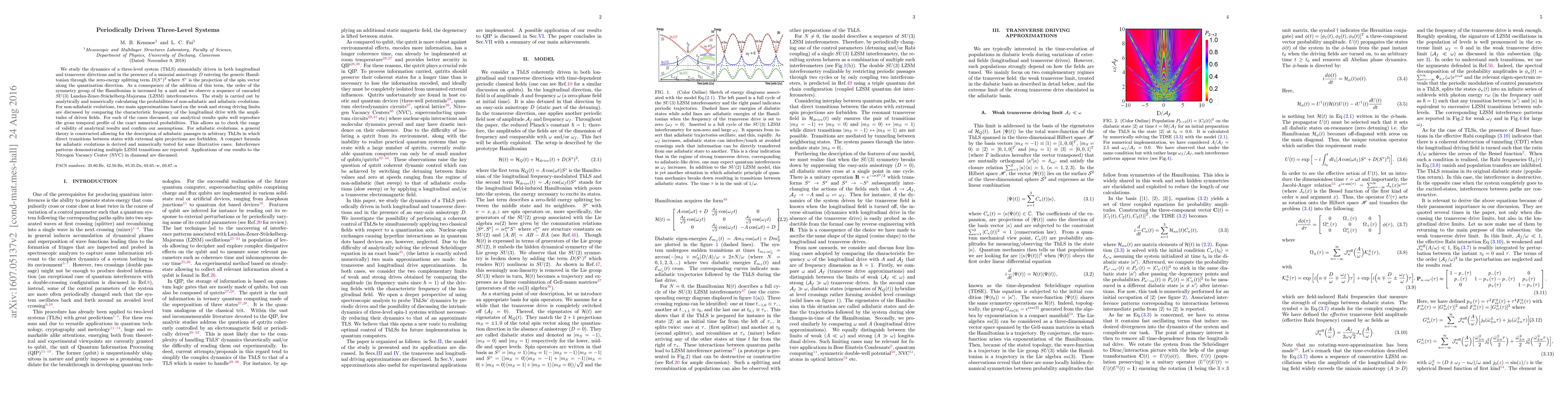 Researchers studied a three-level system driven in multiple directions and with anisotropy, finding sequence of SU(3) Landau-Zener-St"uckelberg-Majorana transitions and compact formulas for adiabatic evolutions.