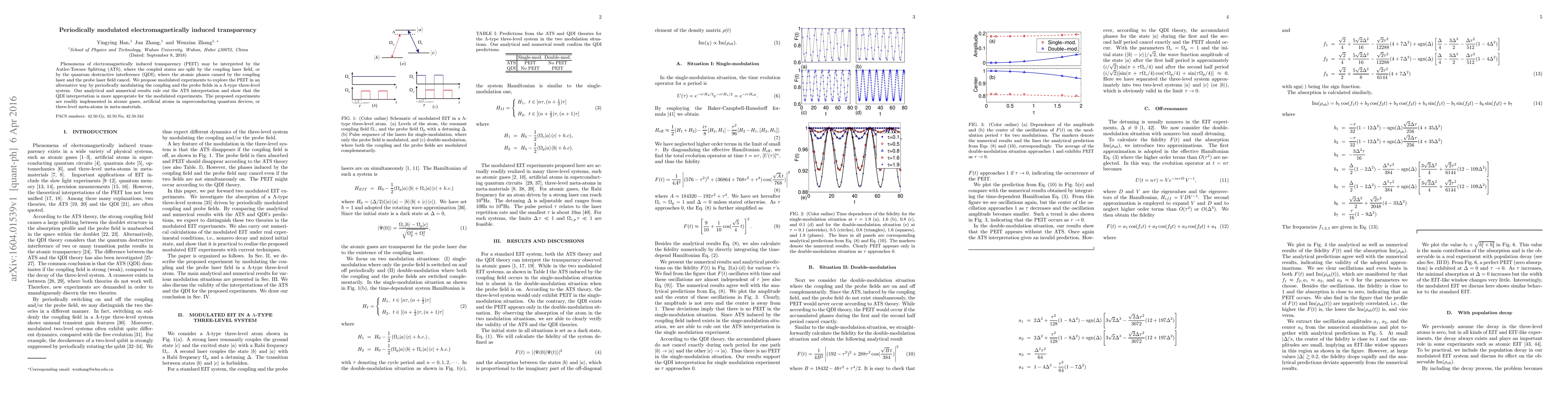 This paper proposes modulated experiments to explore periodically modulated electromagnetically induced transparency (PEIT) in a ?-type three-level system, demonstrating that quantum destructive interference (QDI) rather than Autler-Townes Splitting (ATS) interpretation is more appropriate. The findings suggest practical implementations in atomic gases, superconducting quantum devices, and meta-materials.