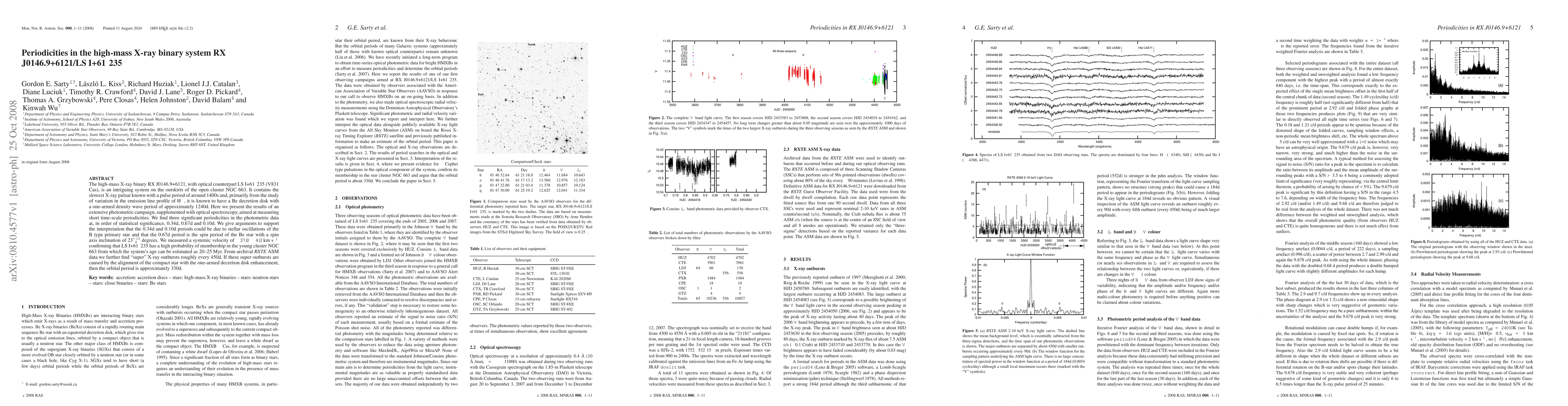 This study investigates the high-mass X-ray binary RX J0146.9+6121/LS I+61 235, identifying three significant periodicities in photometric data: 0.34d, 0.67d, and 0.10d. The 0.67d period is likely the spin period of the Be star, while the other two may indicate stellar oscillations in the B type primary star. The system's age is estimated at 20-25 Myr, suggesting membership in the NGC 663 cluster.