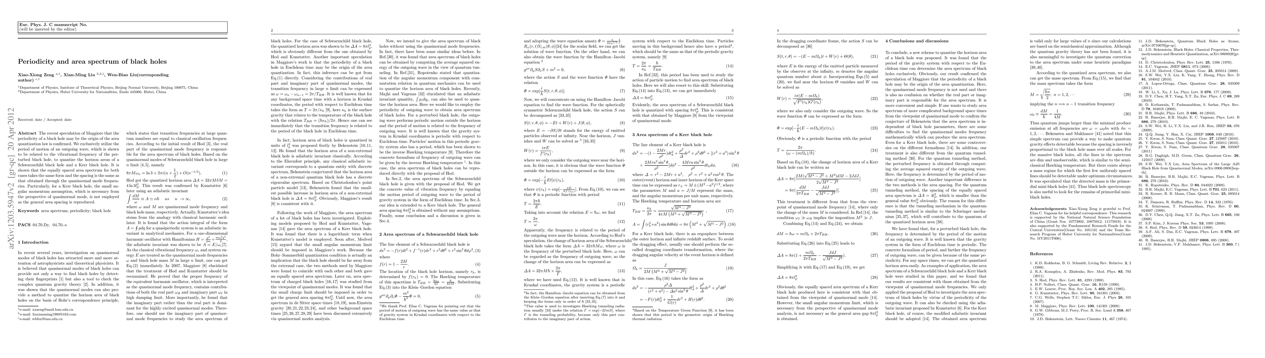 This paper confirms Maggiore's hypothesis that black hole periodicity is linked to area quantization, demonstrating that the vibrational frequency of perturbed black holes correlates with the period of outgoing waves. The study quantizes horizon areas for both Schwarzschild and Kerr black holes, showing an equally spaced area spectrum consistent with quasinormal mode frequencies, without requiring the small angular momentum assumption for Kerr black holes.