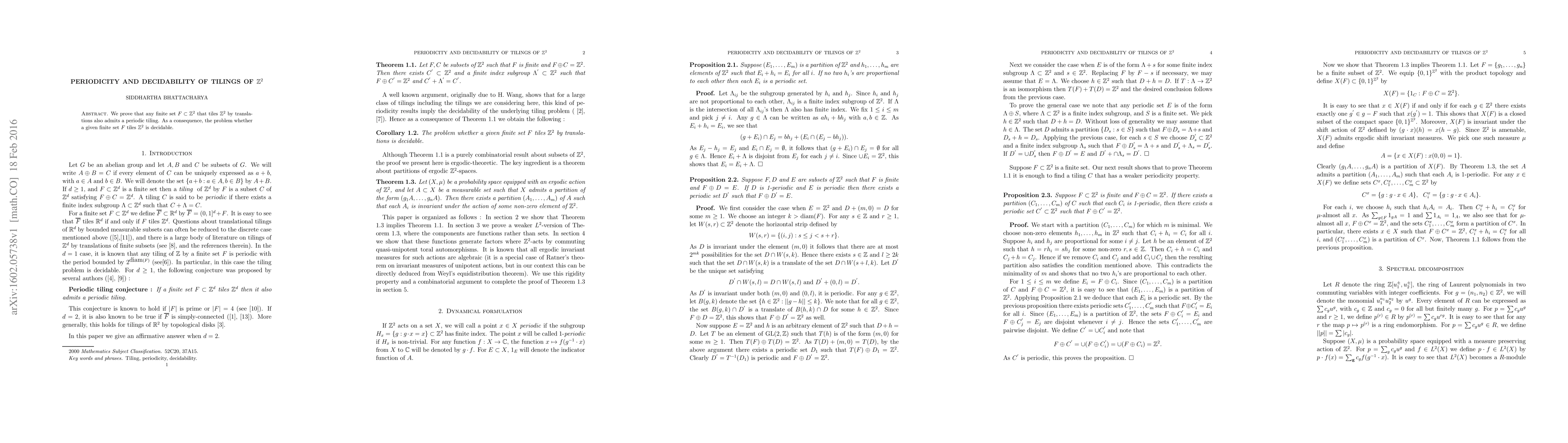 Summary: This paper proves that any finite set of tiles in $\mathbb{Z}^{2}$ that can cover $\mathbb{Z}^{2}$ by translations also admits a periodic tiling, establishing the decidability of the tiling problem for such sets.
