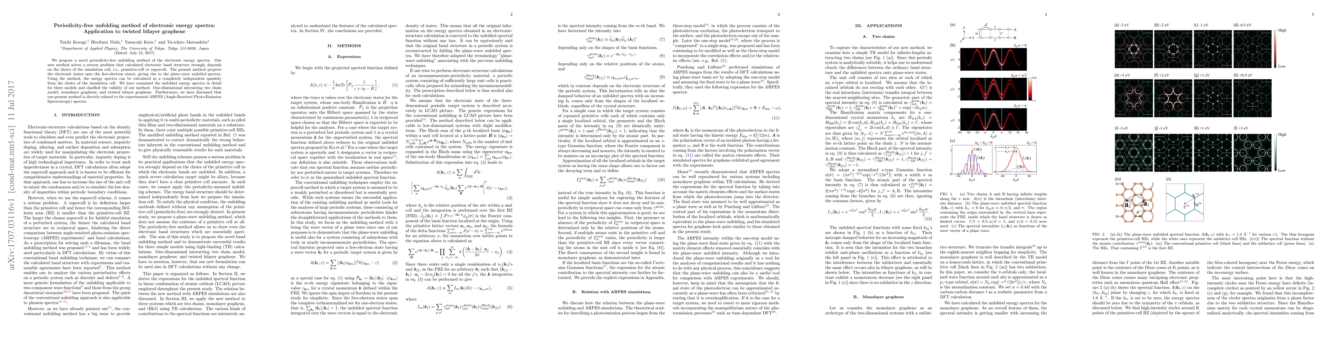 We propose a novel periodicity-free unfolding method of the electronic energy spectra. Our new method solves a serious problem that calculated electronic band structure strongly depends on the choice of the simulation cell, i.e., primitive-cell or supercell. The present method projects the electronic states onto the free-electron states, giving rise to the {\it plane-wave unfolded} spectra. Using the method, the energy spectra can be calculated as a completely independent quantity from the choice of the simulation cell. We have examined the unfolded energy spectra in detail for three models and clarified the validity of our method: One-dimensional interacting two chain model, monolayer graphene, and twisted bilayer graphene. Furthermore, we have discussed that our present method is directly related to the experimental ARPES (Angle-Resolved Photo-Emission Spectroscopy) spectra.