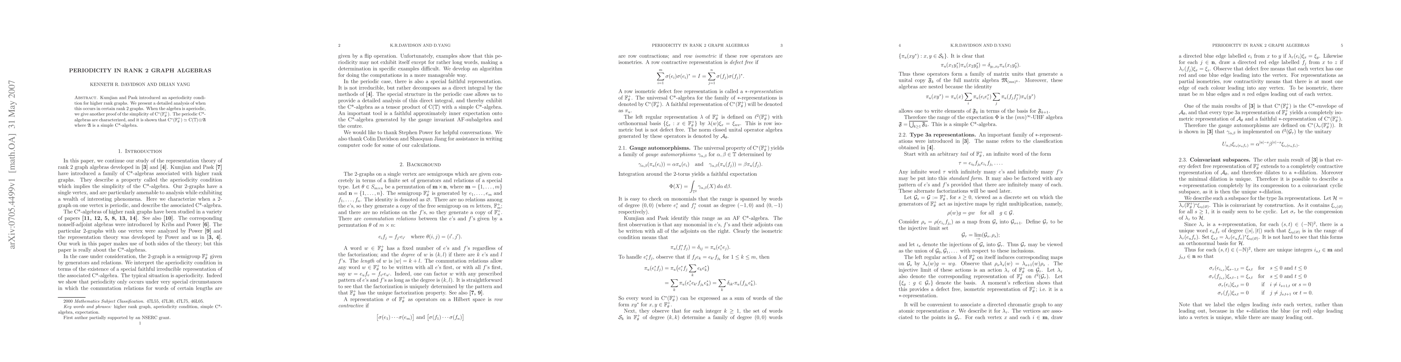 Kumjian and Pask introduced an aperiodicity condition for higher rank graphs. We present a detailed analysis of when this occurs in certain rank 2 graphs. When the algebra is aperiodic, we give another proof of the simplicity of $\ca(\Fth)$. The periodic C*-algebras are characterized, and it is shown that $\ca(\Fth) \simeq \rC(\bT) \otimes \fA$ where $\fA$ is a simple C*-algebra.