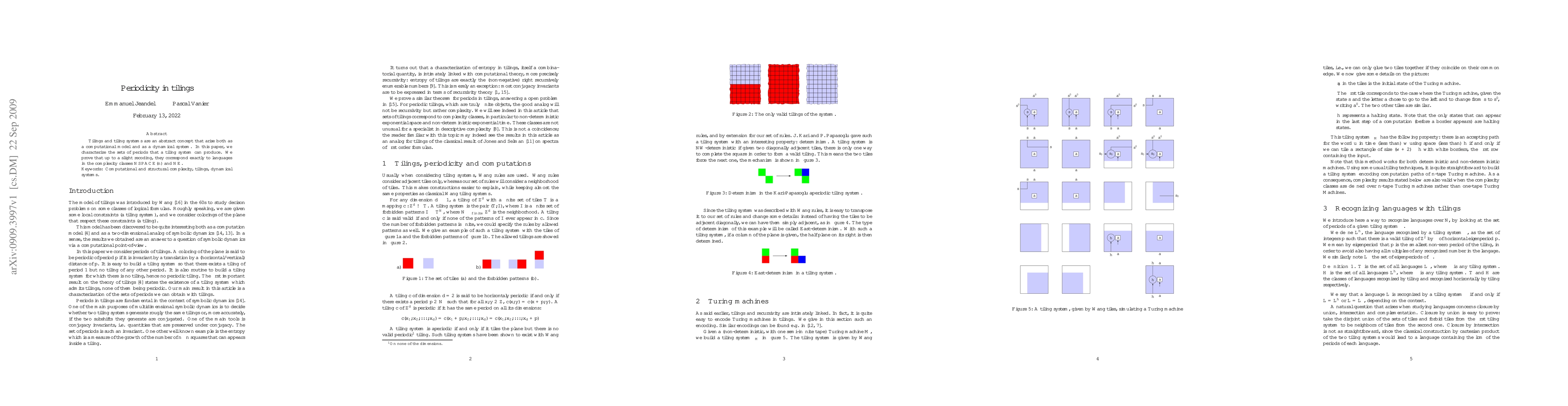 This paper characterizes the periodicity in tiling systems, proving that their sets of periods correspond to languages in the complexity classes $\nspace{n}$ and $\cne$ after a minor recoding. The study bridges computational models and dynamical systems in abstract tiling theory.