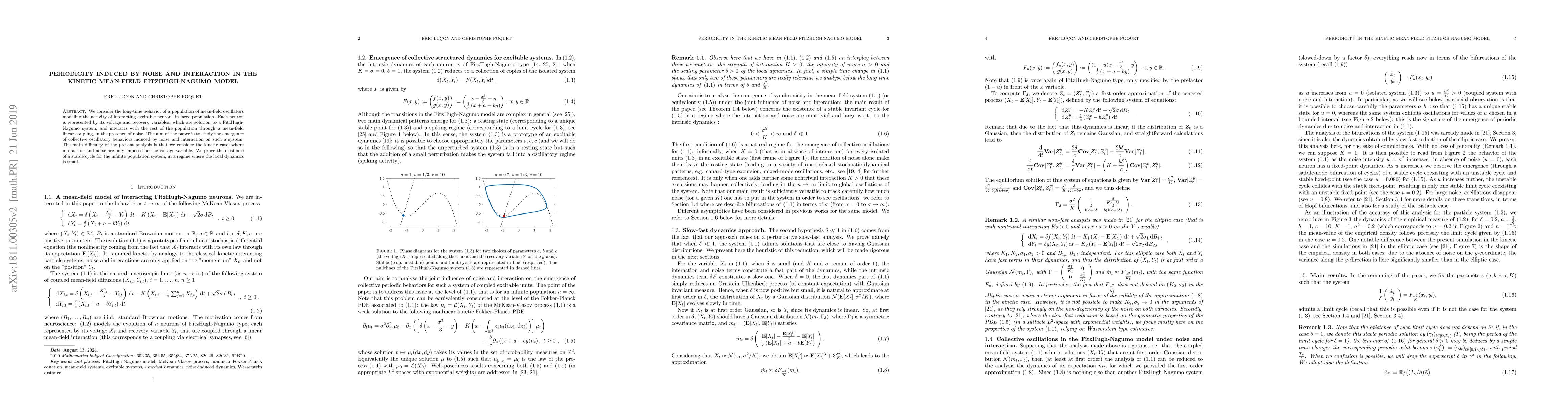 This research explores the collective behavior of neuron models, demonstrating the emergence of stable cycles in a population system under noise and interaction, specifically when interaction and noise impact only the voltage variable.