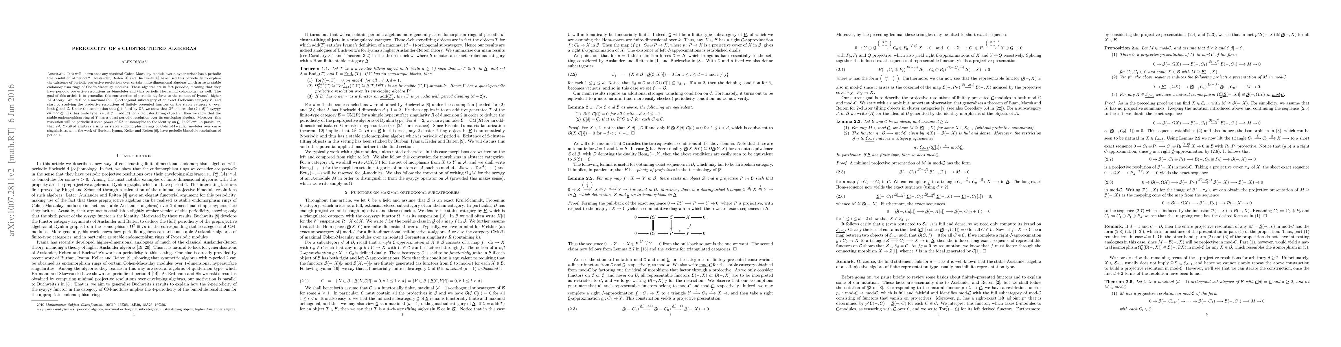 It is well-known that any maximal Cohen-Macaulay module over a hypersurface has a periodic free resolution of period 2. Auslander, Reiten and Buchweitz have used this periodicity to explain the existence of periodic projective resolutions over certain finite-dimensional algebras which arise as stable endomorphism rings of Cohen-Macaulay modules. These algebras are in fact periodic, meaning that they have periodic projective resolutions as bimodules and thus periodic Hochschild cohomology as well. The goal of this article is to generalize this construction of periodic algebras to the context of Iyama's higher AR-theory. We start by considering projective resolutions of functors on a maximal (d-1)-orthogonal subcategory C of an exact Frobenius category B. If C is fixed by the d-th syzygy functor of B, then we show that this d-th syzygy functor induces the (2+d)-th syzygy on the category of finitely presented functors on the stable category of C. If C has finite type, i.e., if C = add(T) for a d-cluster tilting object T, then we show that the stable endomorphism ring of T has a quasi-periodic resolution over its enveloping algebra. Moreover, this resolution will be periodic if some higher syzygy functor is isomorphic to the identity on the stable category of C. It follows, in particular, that 2-C.Y. tilted algebras arising as stable endomorphism rings of Cohen-Macaulay modules over curve singularities, as in the work of Burban, Iyama, Keller and Reiten have periodic bimodule resolutions of period 4.