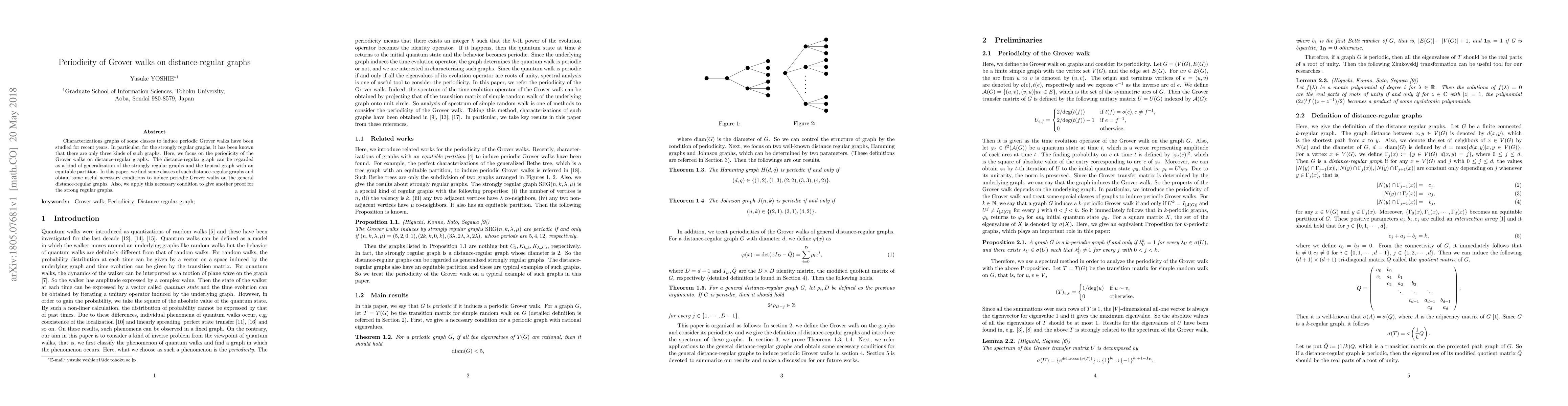 The development of a theoretical framework for characterizing the shape of graphs induced by periodic Grover walks.