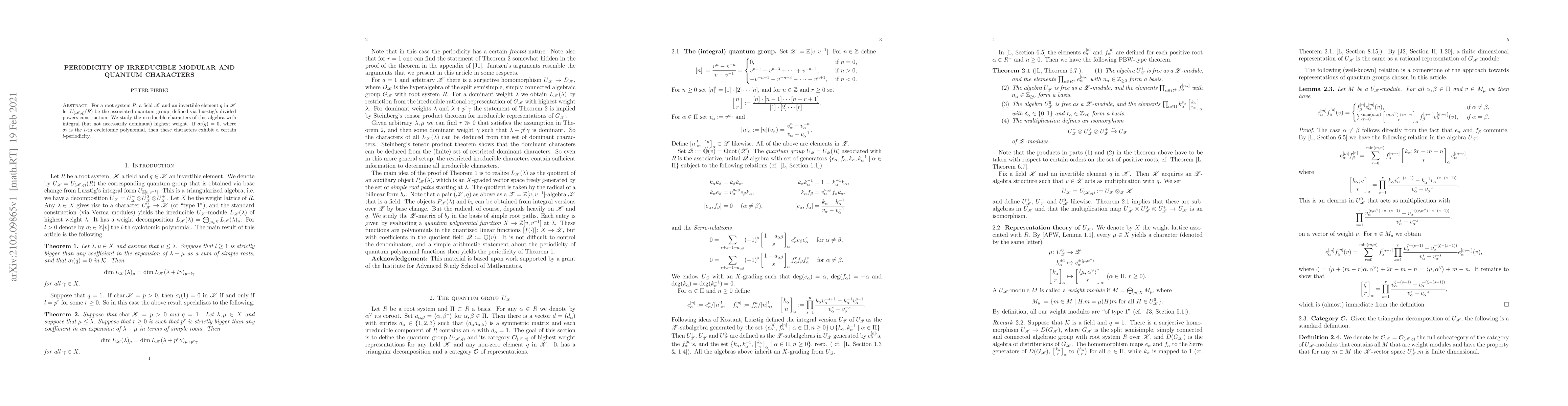 For a root system R, a field K and an invertible element q in K let U be the associated quantum group, defined via Lusztig's divided powers construction. We study the irreducible characters of this algebra with integral (but not necessarily dominant) highest weight. If the l-th cyclotomic polynomial vanishes when evaluated at q, then these characters exhibit a certain l-periodicity.