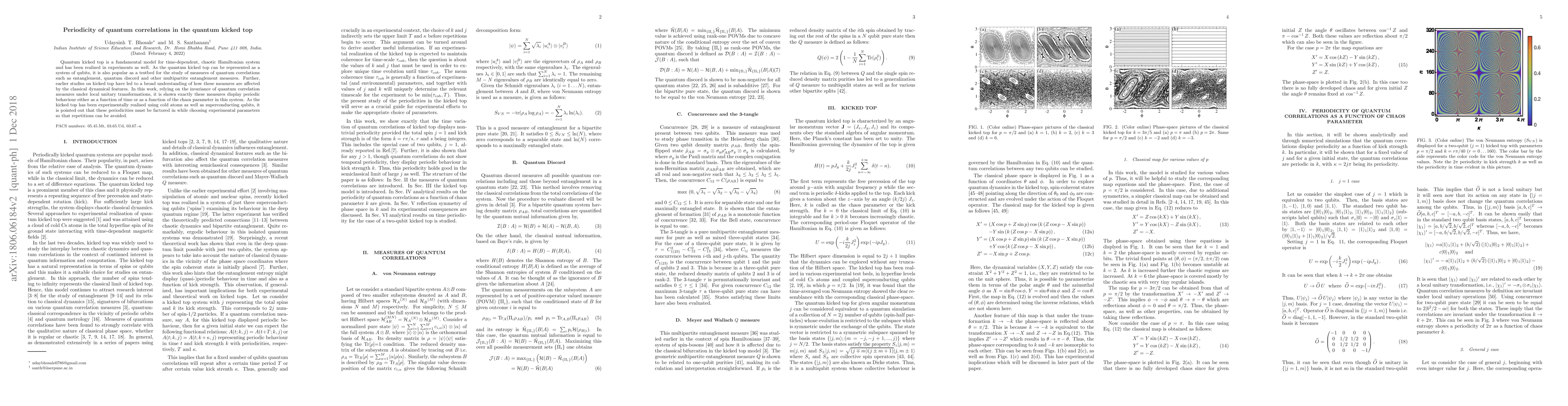 This paper investigates the periodicity of quantum correlations in the quantum kicked top, demonstrating that measures such as entanglement and quantum discord exhibit periodic behavior either with time or the chaos parameter. The findings suggest that experimental setups using this model must account for these periodicities to avoid unnecessary repetitions.