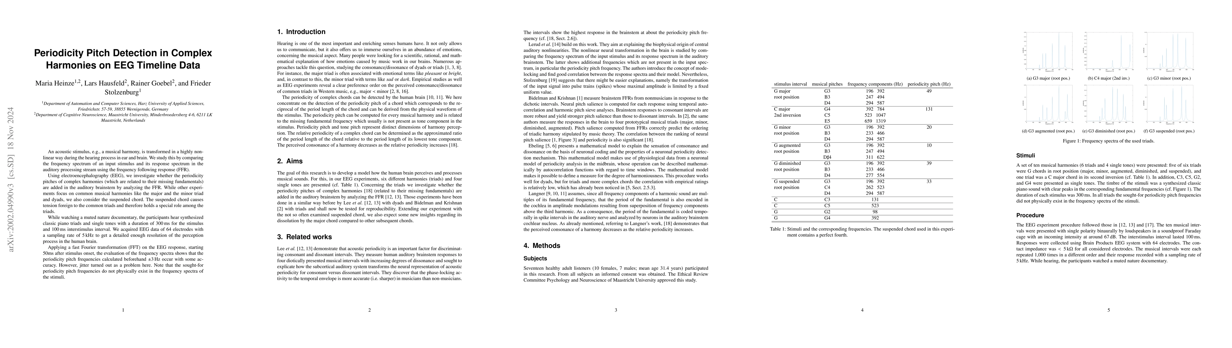 Researchers used EEG to study how our brains process complex musical harmonies, finding that periodicity pitches appear in the brain's response spectrum, but with some variation.