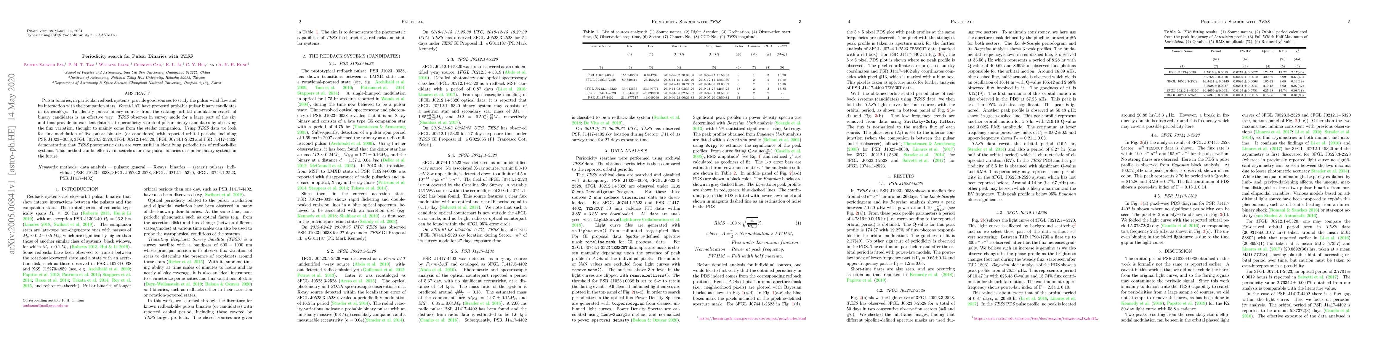 This paper investigates the use of TESS data to search for periodicity in pulsar binaries, specifically redback systems, by observing flux modulation. The study confirms that TESS photometric data can effectively identify orbital periods in known pulsar binaries, demonstrating its utility for future searches of similar systems.