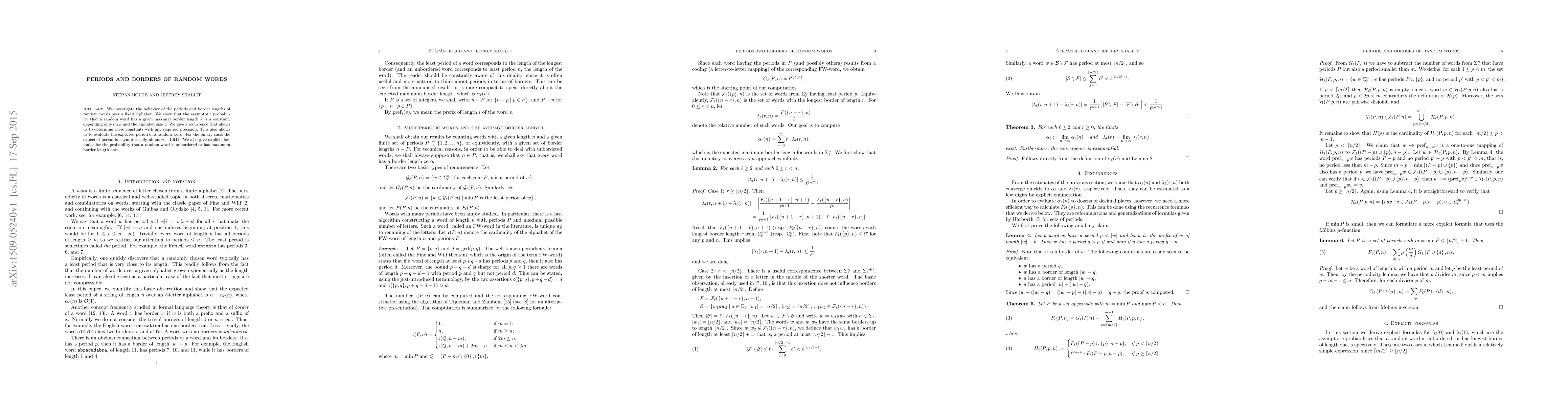 We investigate the behavior of the periods and border lengths of random words over a fixed alphabet. We show that the asymptotic probability that a random word has a given maximal border length $k$ is a constant, depending only on $k$ and the alphabet size $\ell$. We give a recurrence that allows us to determine these constants with any required precision. This also allows us to evaluate the expected period of a random word. For the binary case, the expected period is asymptotically about $n-1.641$. We also give explicit formulas for the probability that a random word is unbordered or has maximum border length one.